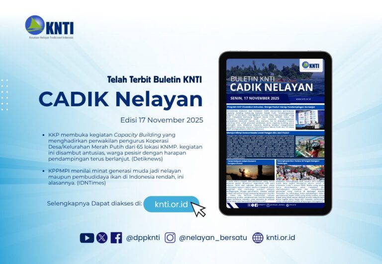 Cadik Nelayan KNTI adalah buletin mingguan yang diterbitkan oleh Kesatuan Nelayan Tradisional Indonesia (KNTI) sebagai ruang informasi, edukasi, dan advokasi bagi komunitas pesisir. Buletin ini menghadirkan kabar terbaru seputar kebijakan kelautan, isu lingkungan, budaya pesisir, hingga kegiatan lapangan yang dilakukan