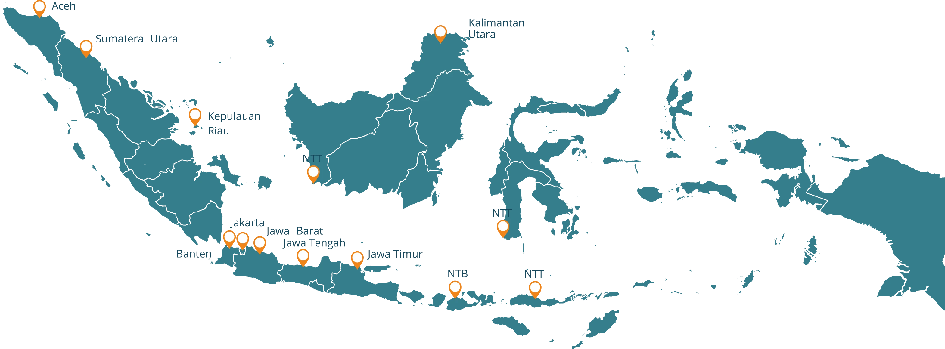 Aceh : Kab. Aceh BesarKab. Aceh SelatanKab. Aceh UtaraKab. Bireun Sumatera Utara : Kota MedanKab. Tanjung Balai-AsahanKab. BatubaraKab. Serdang BedagaiKab. LangkatKab. Deli Serdang Kepulauan Riau : Kota BatamKab. BintanKab. LinggaKab. Anambas Kalimantan Utara : Kota Tarakan NTB : Kab. Lombok TimurKab. Lombok Utara Banten : Kab. Tangerang Jawa Tengah : Kota SemarangKota PekalonganKab. PekalonganKab. DemakKab. PemalangKab. RembangKab. JeparaKab. KendalKab. Batang Jawa Timur : Kota SurabayaKab. GresikKab. TubanKab. LamonganKab. BanyuwangiKab. BangkalanKab. PamekasanKab. Sumenep Jakarta : Kepulauan SeribuJawa Barat : Kab. Indramayu NTT : Kab. Manggarai Barat
